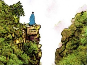 When the mind is detached from worldly matter, the surroundings are naturally peaceful. How fine the sunset reflected in mountain mist! Birds are flying home in groups. No words can express the profound meanings, within these scenes.